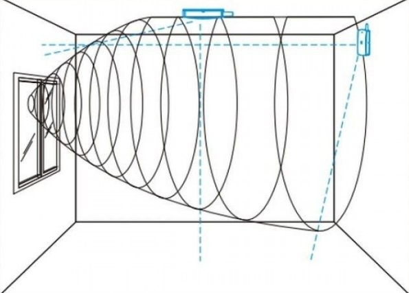Ο αισθητήρας τοποθετείται για να προστατέψει εισόδους, διαδρόµους, µεγάλες επιφάνειες τοίχων, εξωτερικούς χώρους αισθητήρας υπέρυθρων δηµιουργεί ένα διάγραµµα κάλυψης σε µορφή «κουρτίνας»